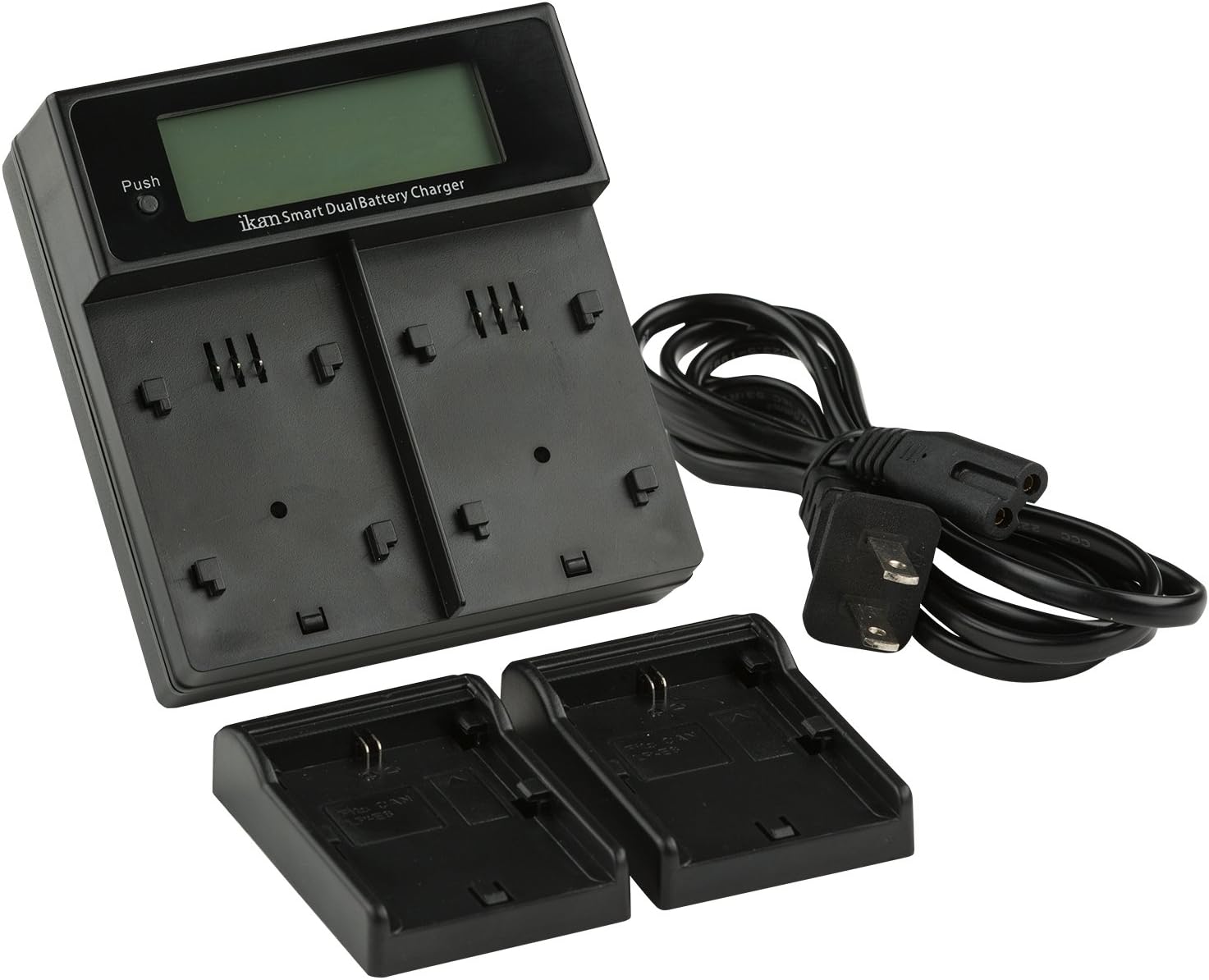 The ICH-KDUAL-E6 is a combination of the ICH-K-BASE and two ICH-KBP-E6 battery plates, allowing the user to charge two Canon E6 style batteries simultaneously. With the push of a button, users can switch between high- and low-voltage charge modes, and extra battery plates are available for charging different styles of battery. Plates can even be mixed-and-matched, for charging batteries of different styles and even different manufacturers simultaneously.