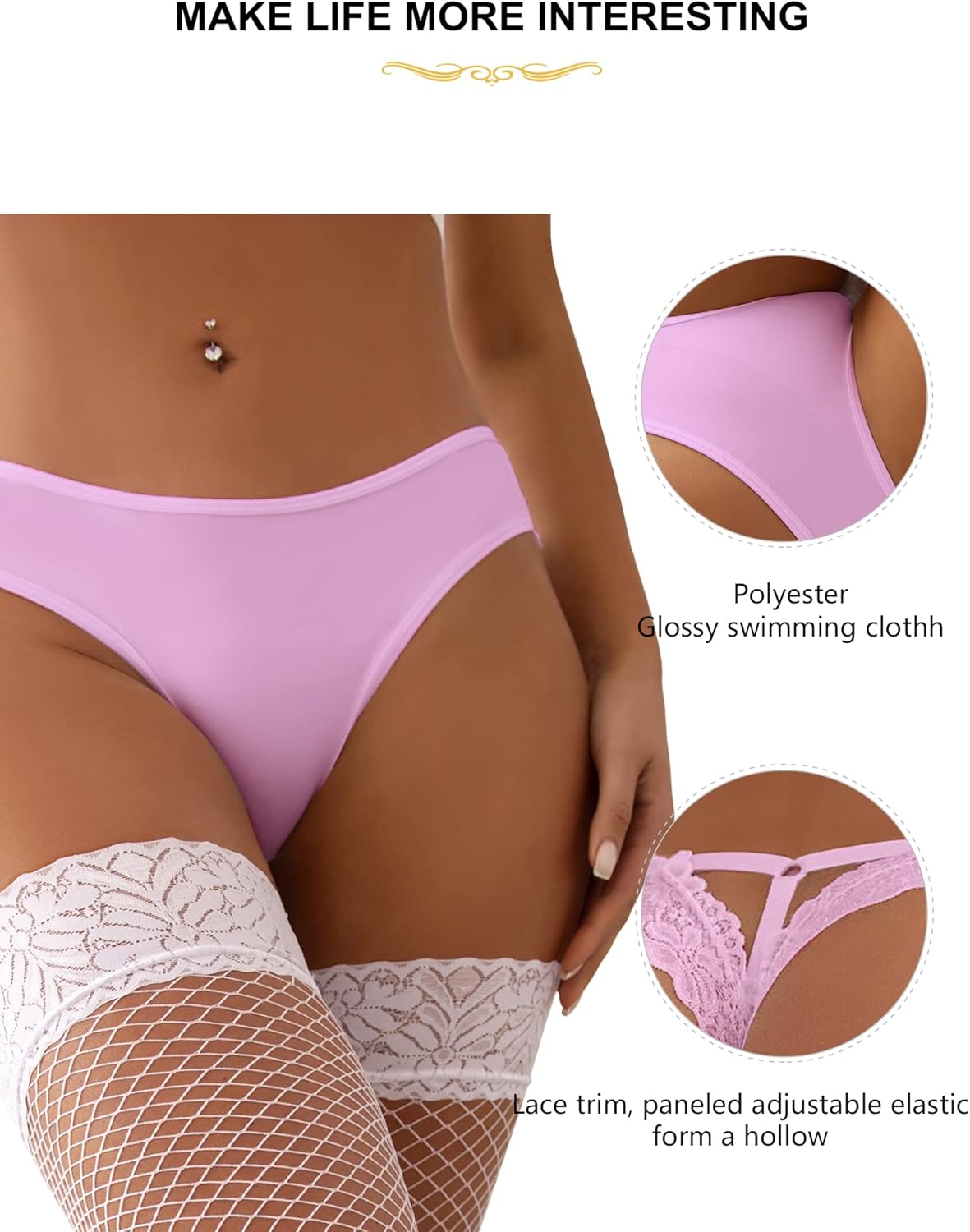 Made of high-quality fabric, it's soft, stretchy, comfortable, and breathable. The 100% cotton lining protects women's health. With an adjustable strap and hollow out design at the back, it enhances your hip and waist ratio. Easy to match with jeans, yoga pants, and more. This low-waist underwear is fashionable, cute, sexy, and elegant. It makes you look and feel pretty. If you're looking for something different, this is the best choice. Contact us if you have any questions. We strive to improve our products and service based on your feedback.